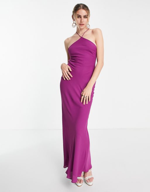 ASOS DESIGN soft halter bias maxi dress in magenta