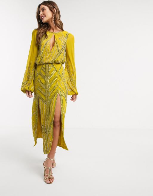 ASOS DESIGN embellished racer neck midaxi dress in allover sequin in yellow