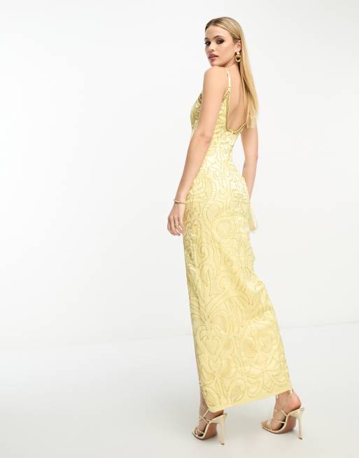 ASOS DESIGN Tall cami sequin embellished seamed midi dress in lemon