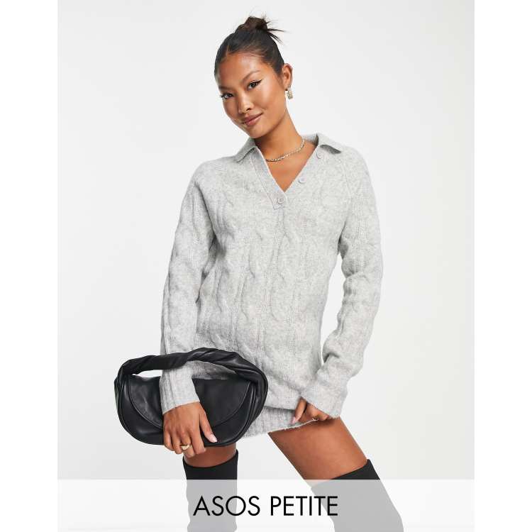 ASOS DESIGN Petite knitted mini jumper dress with open collar in