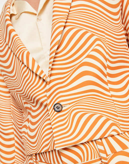 ASOS DESIGN skinny cropped suit jacket in white and orange swirl