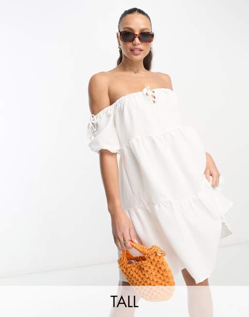 In The Style Tall x Stacey Solomon tiered bardot dress in white ASOS