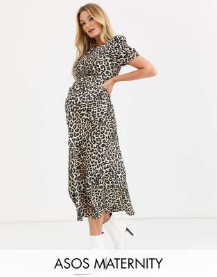 ASOS DESIGN Maternity midi tea dress in leopard print