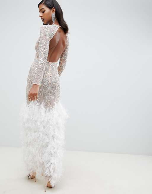Embellished sequin maxi dress clearance with faux feather trim, ASOS DESIGN long sleeve embellished sequin mini dress with faux clearance