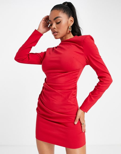 ASOS DESIGN long sleeve structured mini dress with pleat detail in red