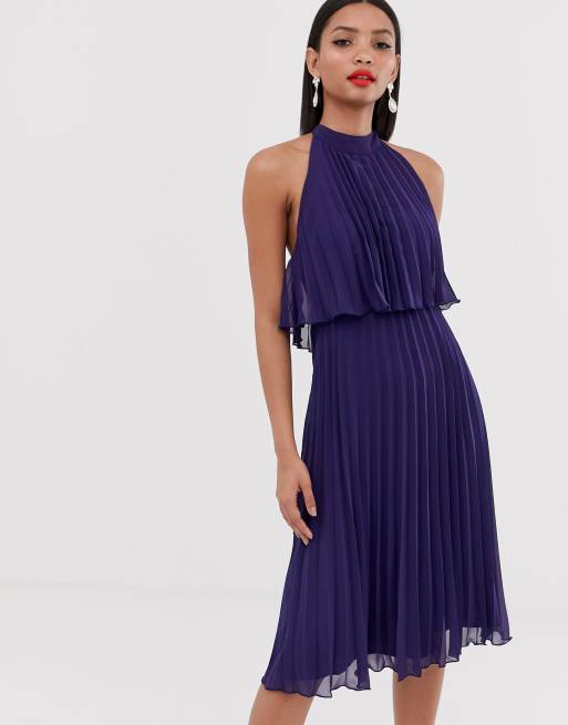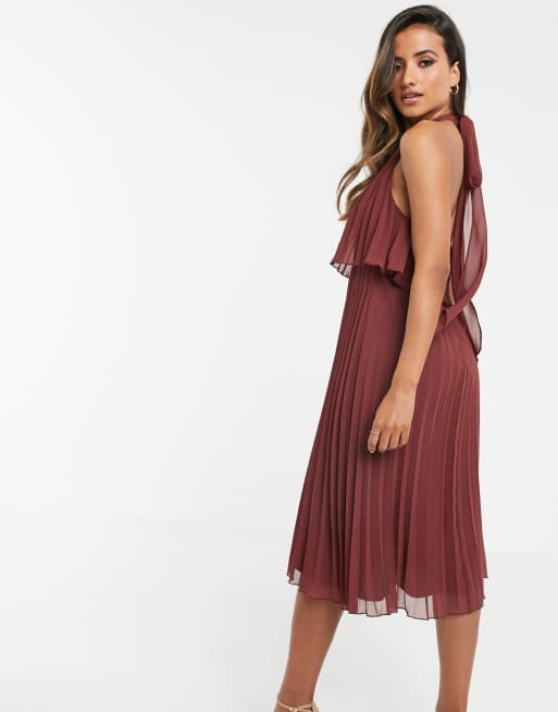 Halter tie neck midi dress clearance in pleat, ASOS DESIGN halter tie neck midi dress in pleat clearance