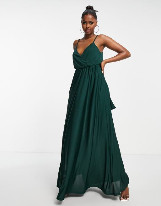 ASOS DESIGN wrap front tie back maxi dress in forest green ASOS