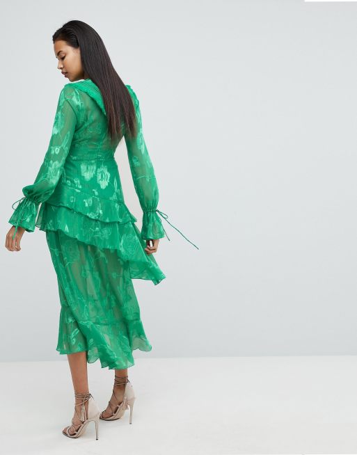 ASOS LUXE wired ruffle one shoulder ruched mini dress in hot pink