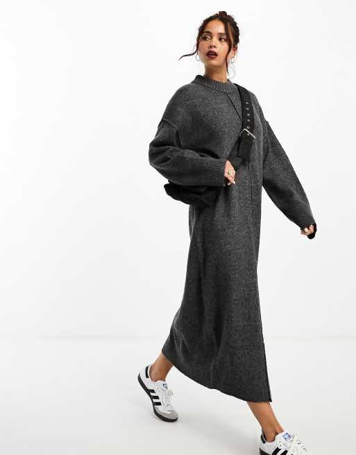 Asos clearance wool dress, ASOS DESIGN oversized knitted midi dress with crew neck and seam clearance