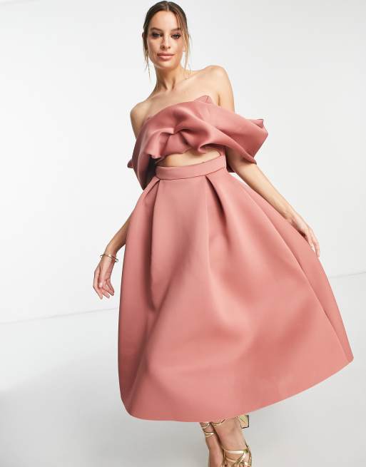 Asos pink bardot clearance dress, ASOS DESIGN Tall bardot midi cut out skater dress in rose ASOS clearance
