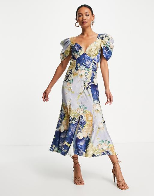 Asos tea dress clearance midi, Influence flutter sleeve midi tea dress in mixed floral print ASOS clearance