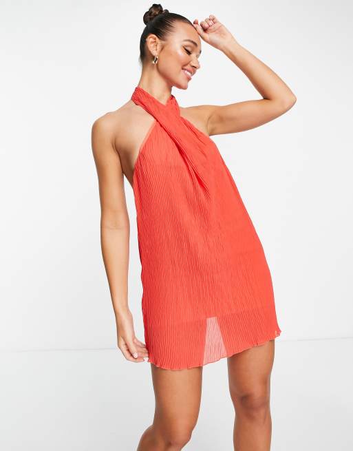 Asos red halter clearance neck dress, Anaya With Love Bridesmaid halter neck dress in red plum RED clearance