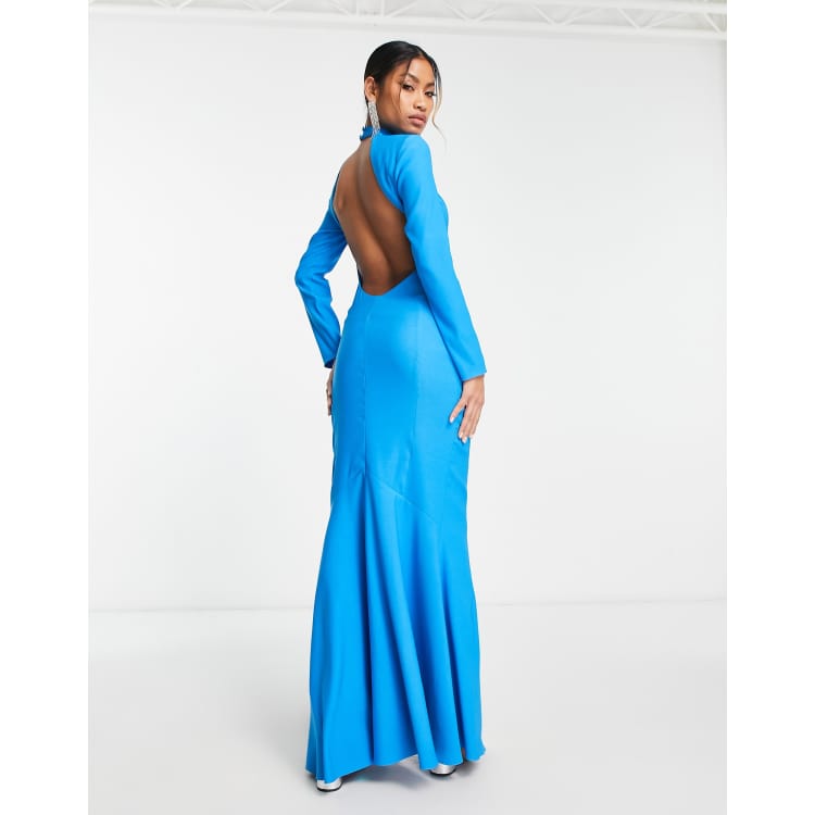 Asos light blue clearance maxi dress, ASOS DESIGN high neck maxi dress with open back in electric blue clearance