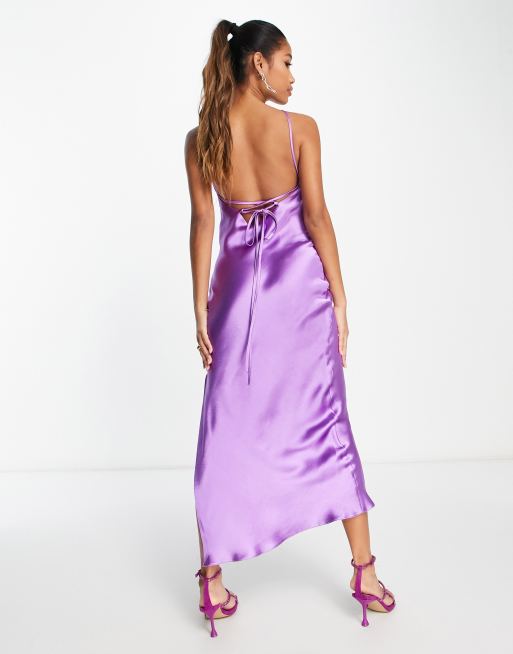 Asos dusty purple clearance dress, ASOS DESIGN halter satin midi dress with side slit and lace up back in purple clearance