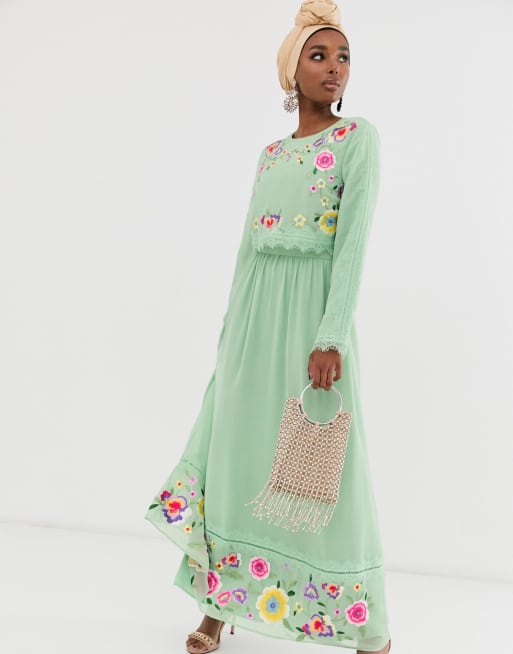 ASOS Double Layer Midi Dress with Contrast Embroidery and Beading