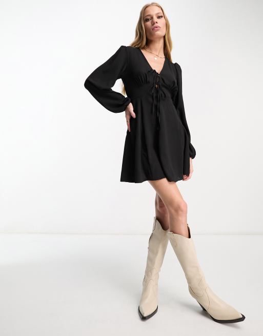 Asos swing dress clearance with long sleeves, ASOS DESIGN long sleeve tie front mini tea dress in black clearance