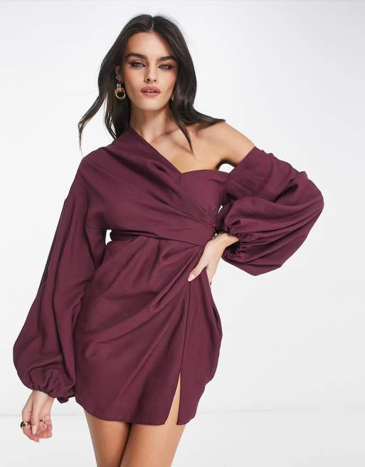 Asos clearance balloon sleeve, ASOS DESIGN off shoulder drape mini dress with balloon sleeve in clearance