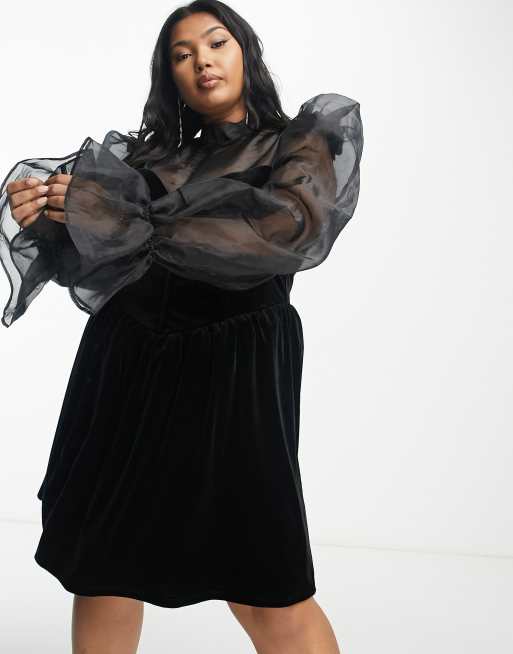ASOS LUXE Curve high neck corsetted velvet mini dress with sheer