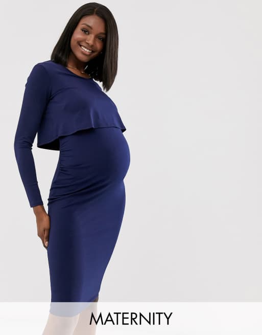 Blume Maternity exclusive 2 in 1 stretch midi dress in navy ASOS