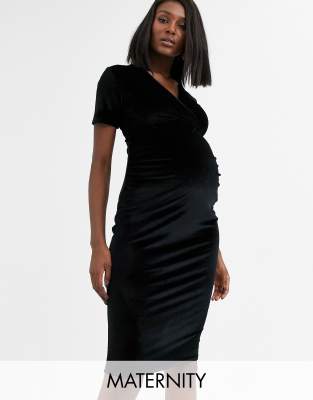 Blume clearance maternity dress, Blume Maternity Exclusive Velvet Wrap Front Stretch Midi Dress In clearance