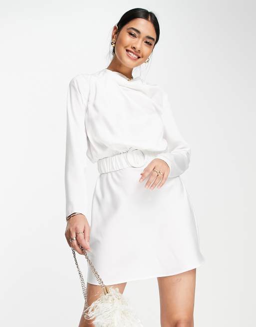 Asos white satin clearance dress, ASOS DESIGN drape high neck satin long sleeve mini dress with clearance