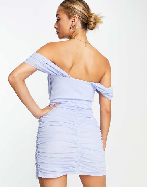 ASOS DESIGN off shoulder lace up mini dress in blue mesh