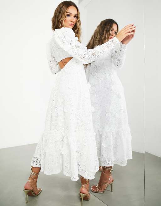 ASOS EDITION 3D floral maxi dress with cut out back in white