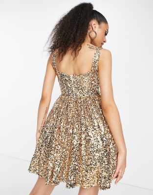 Asos gold and navy clearance sparkle mesh skater dress