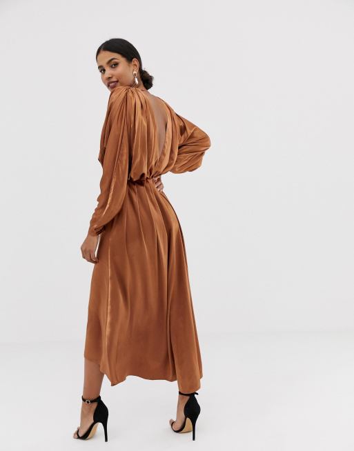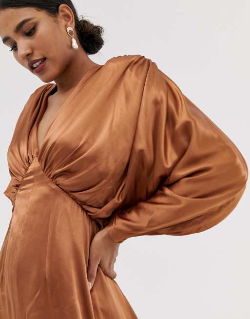 ASOS EDITION ruched batwing midi dress in satin ASOS