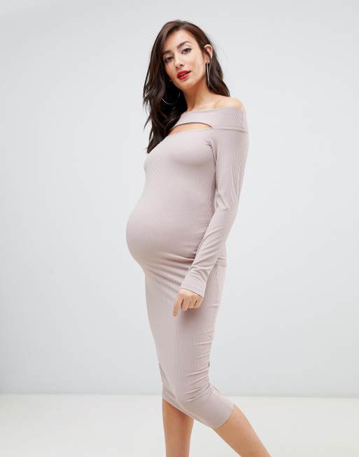 ASOS DESIGN Maternity slash neck bodycon midi dress