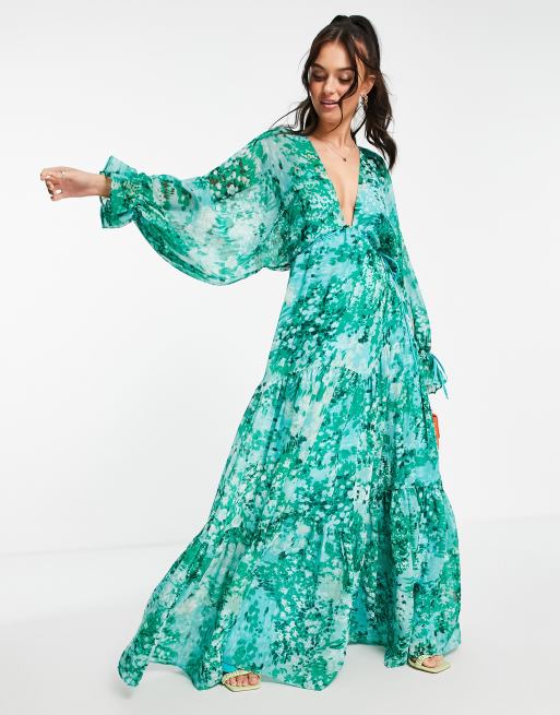 ASOS DESIGN maxi dress with tie waist in blurred blossom print