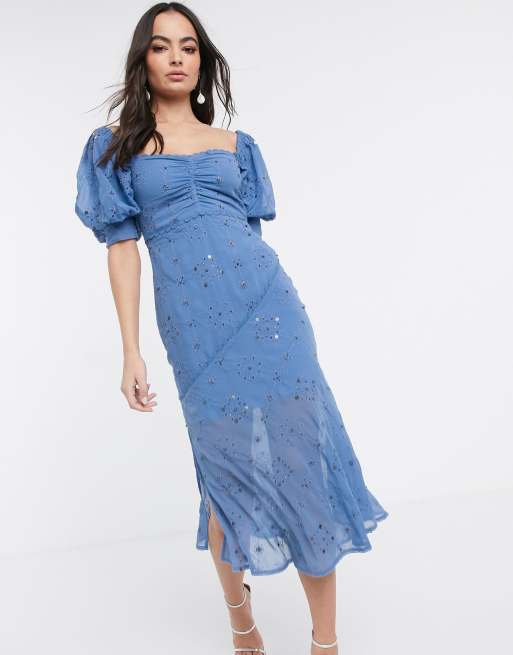 Cornflower blue dress clearance asos, ASOS DESIGN off shoulder embellished studded broderie midi dress clearance