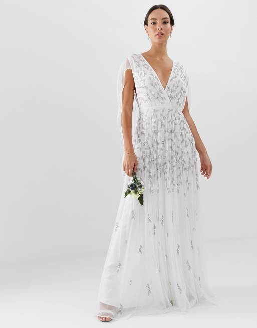 ASOS DESIGN Curve embellished cape wedding dress WHITE