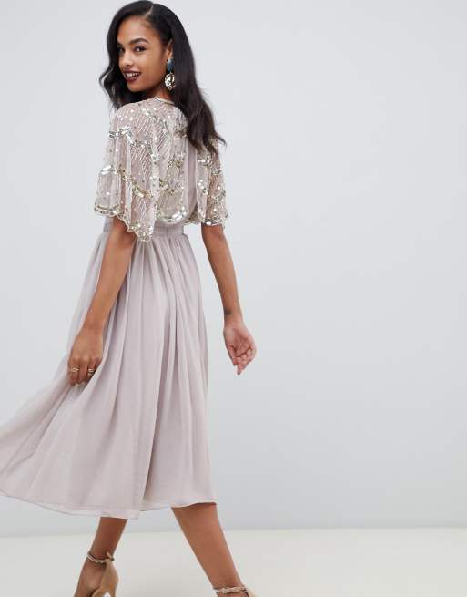 ASOS DESIGN scallop hem embellished crop top midi dress ASOS