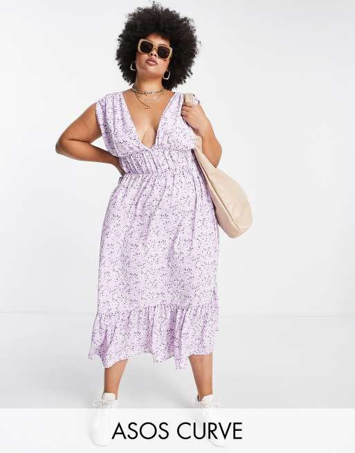 ASOS DESIGN Curve ruched waist midi tea dress in floral print