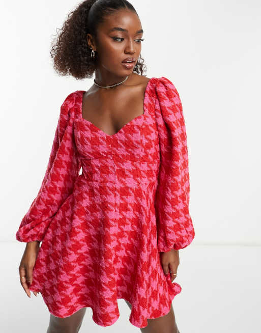 ASOS DESIGN boucle corset mini dress in pink and red houndstooth