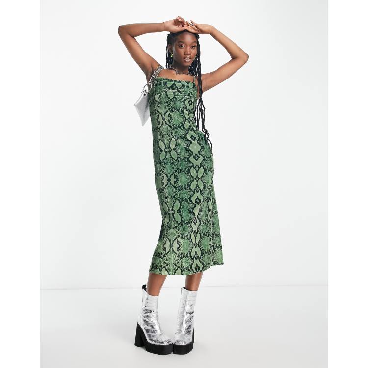COLLUSION straight neck velvet snake print midi dress in green ASOS
