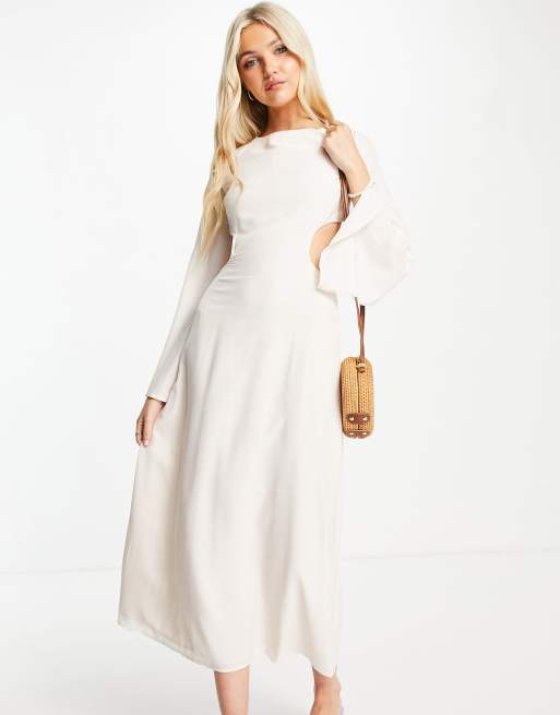 Skylar Rose cut out lace up back satin midi dress in cream ASOS