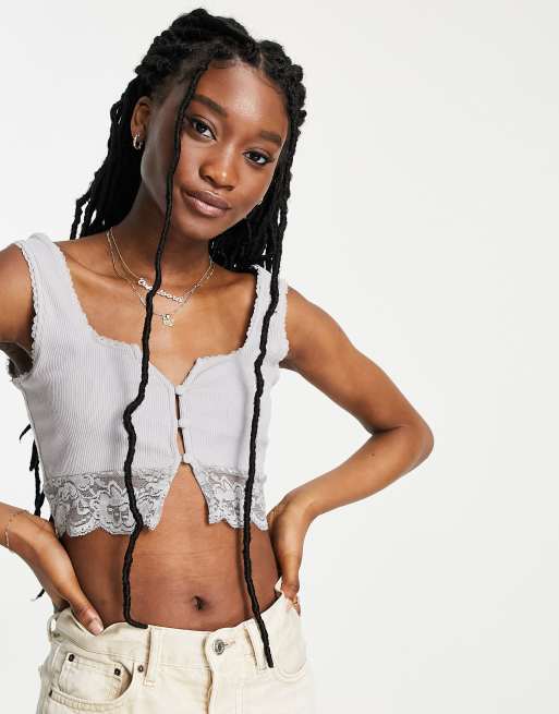 Skylar Rose square neck ribbed crop top with lace hem part of a set