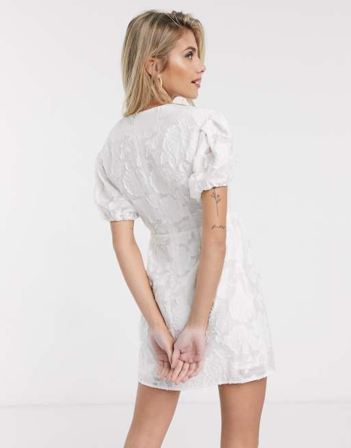 Skylar Rose puff sleeve mini a line dress in off white