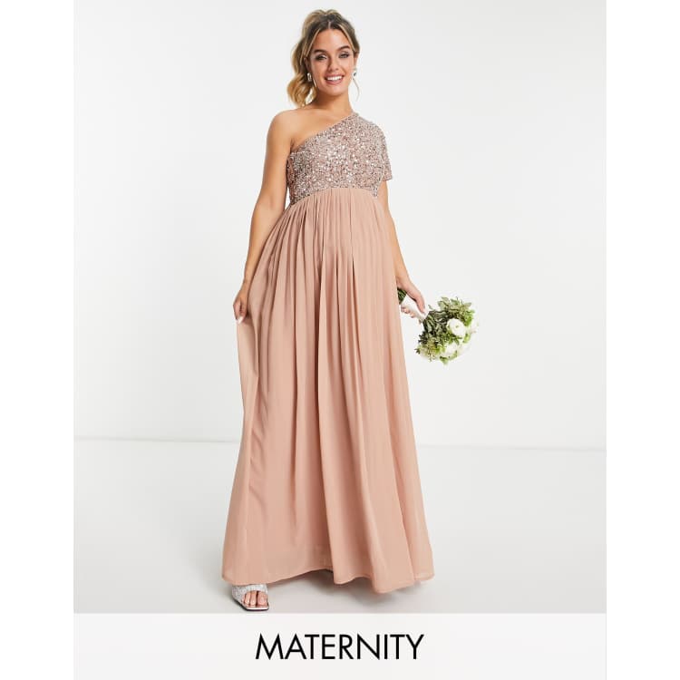 Beauut Maternity bridesmaid embellished bodice one shoulder maxi dress in taupe