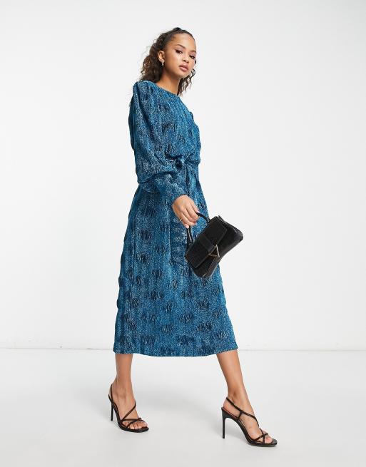 Y.A.S glitter long sleeve midi dress in blue