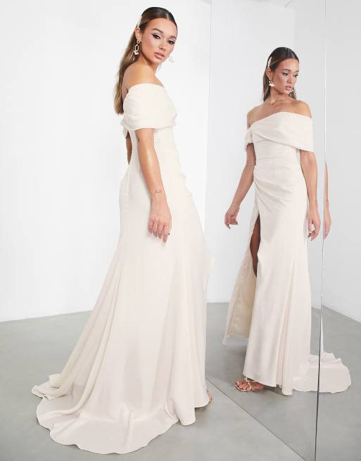 Bardot bea wrap clearance dress, ASOS DESIGN Beatrice bardot drape wrap wedding dress ASOS clearance