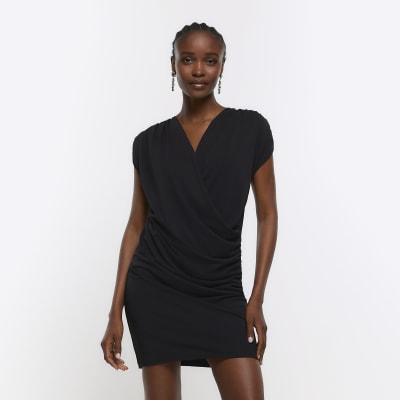 Black wrap over clearance dress, Black Wrap Dresses River Island clearance