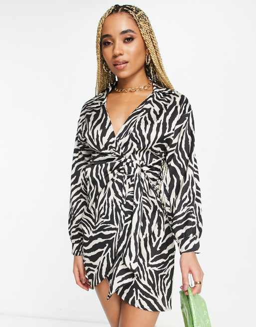 Zebra clearance wrap dress, NEW LOOK Black White Zebra Animal Print Tiered Midi Wrap Dress clearance