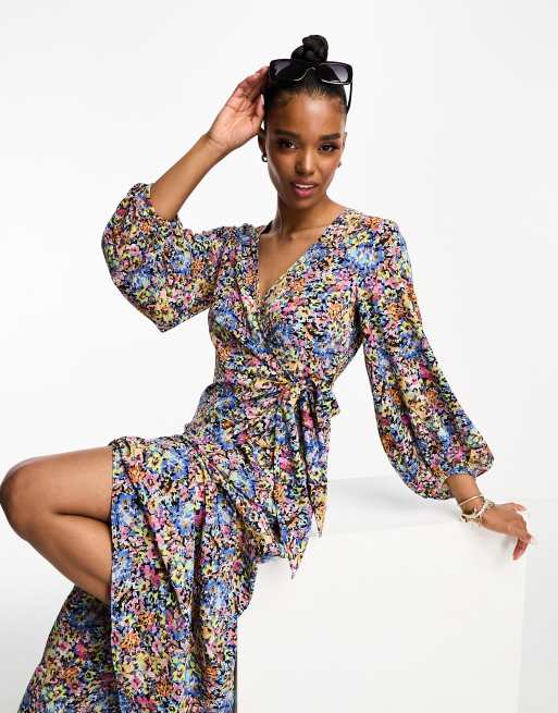 Vero Moda wrap long sleeve midi dress in floral ASOS