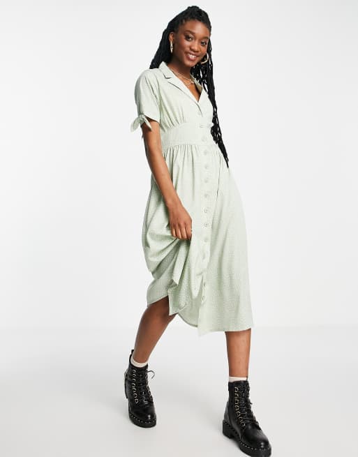 Wednesday s Girl midi tea shirt dress in sage spot ASOS