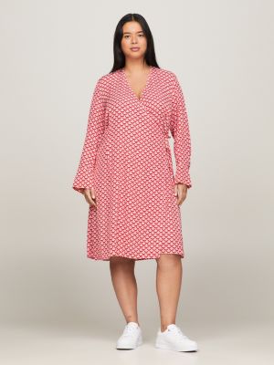 Tommy hilfiger wrap clearance dress, Curve Fit And Flare Wrap Dress Red Tommy Hilfiger clearance