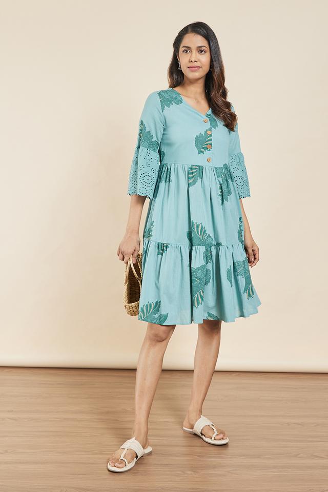 Buy HAUTE CURRY Printed V Neck Rayon Women s Midi Dress Shoppers