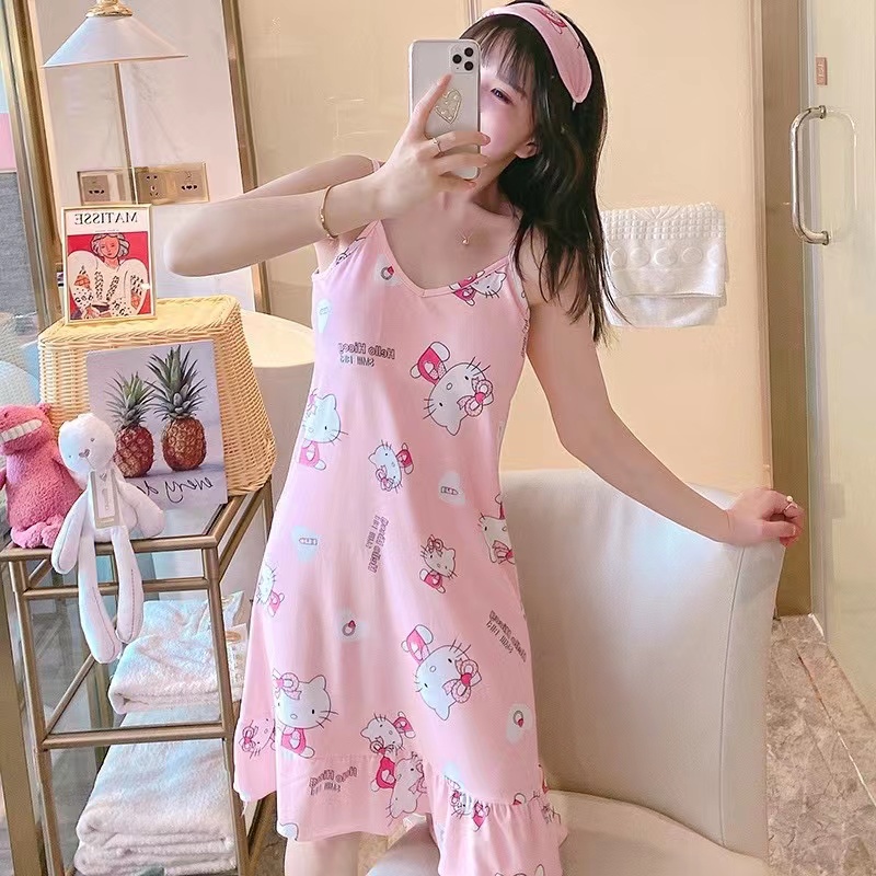 Cute Spaghetti Night Dress For Women Pajama Sleepwear Ruffle